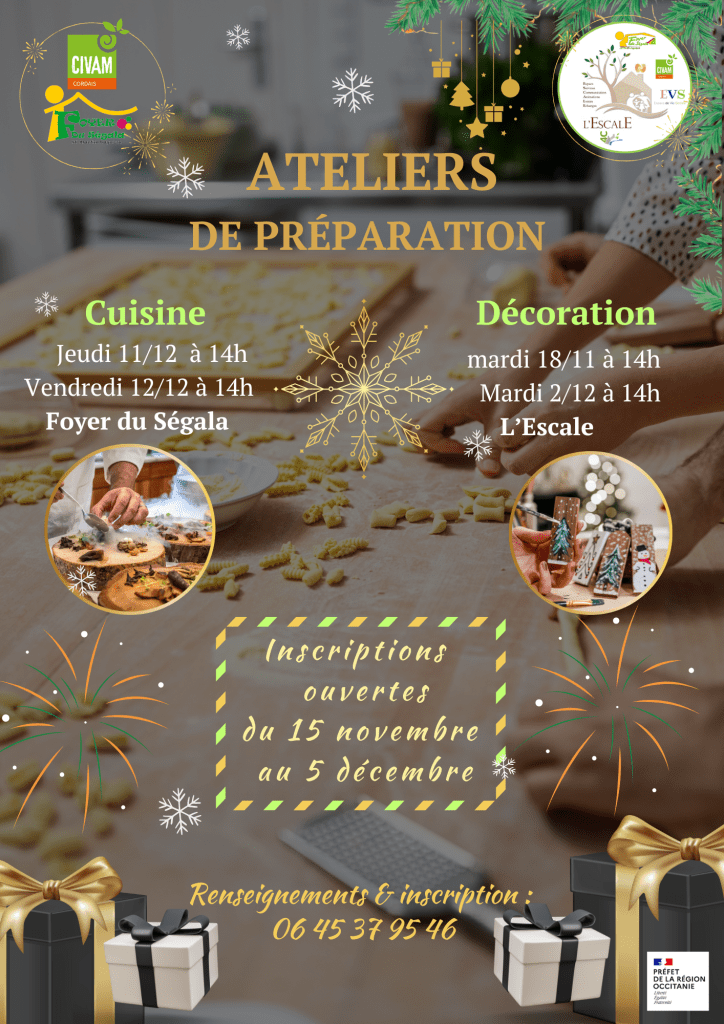 Ateliers cuisine et décoration ouverts à tous pour créer ensemble un moment chaleureux.